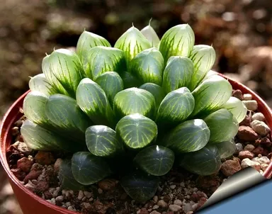Haworthia vytvára kompaktné ružice priesvitných, objemných listov, ktoré pripomínajú kvapky vody na zemi. Môže sa zdať, že ide o umelú rastlinu vyrobenú zo skla.