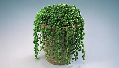 Táto kaskádovitá rastlina vyzerá ako živý náhrdelník – tenké, previsnuté stonky sú posiate malými zelenými guľôčkami. Dospelá rastlina môže mať výhonky dlhé až 1 meter.